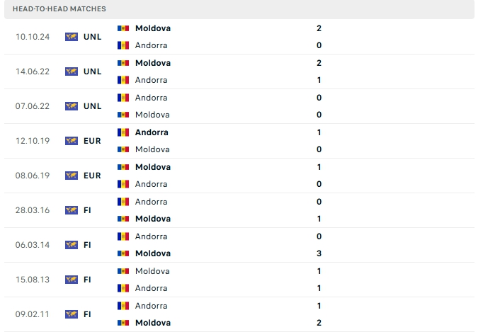 Lịch sử thi đấu của Andorra vs Moldova