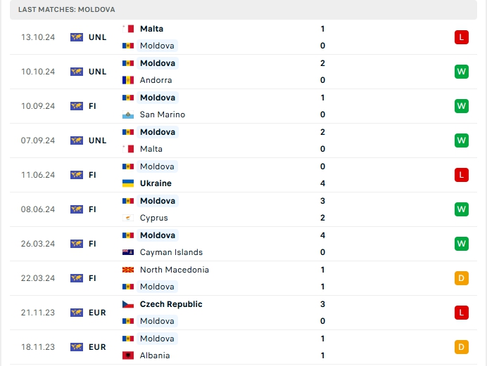 Ở màn đụng độ gần nhất giữa hai đội cũng là lượt đi tại Nations League năm nay, Moldova có được 3 điểm sau khi đánh bại đối thủ 2-0 ngay trên sân nhà, và lần tái ngộ này việc hành quân đến sân đối phương sẻ có đôi chút khó khăn nhưng Moldova hứa hẹn vẫn sẻ có được chiến thắng sau cùng.