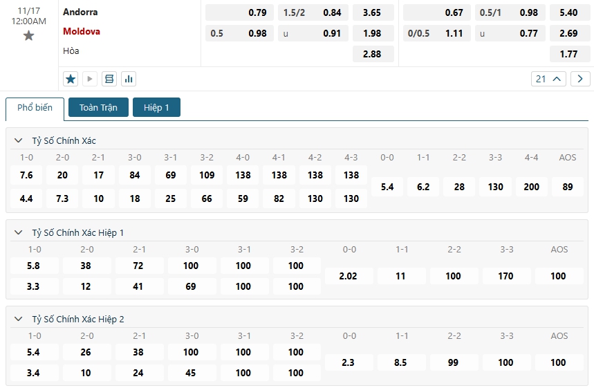 Soi kèo vị Andorra vs Moldova