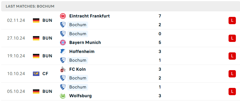 Mùa giải 2024/25 đang chứng kiến sự tuột dốc không phanh của Bochum, khi đội bóng này chỉ mới kiếm được duy nhất 1 điểm từ trận hòa với tân binh Holstein Kiel, trong khi đã thua cả 8 trận còn lại. Hàng thủ của họ đang gặp vấn đề nghiêm trọng khi để lọt lưới tới 29 bàn thua. Mặc dù vừa bổ nhiệm tân HLV Markus Feldhoff, nhưng tình hình dường như vẫn không có dấu hiệu cải thiện. Tấm vé xuống hạng vẫn còn nguyên nếu Bochum cứ chơi với tình trạng bết bát như hiện tại.