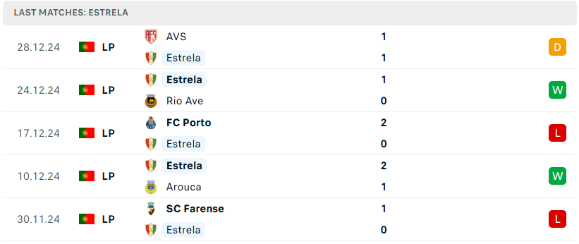 CD Estrela nhìn chung đang có một mùa giải không quá ấn tượng, khi chỉ giành được 4 chiến thắng sau 16 vòng đấu. Tuy nhiên, điều này cũng không quá bất ngờ, bởi đây mới chỉ là mùa giải thứ hai của họ tại Liga NOS. Dù gặp không ít khó khăn, nhưng phong độ gần đây của Estrela đã có những tín hiệu tích cực. Trong 4 vòng đấu gần nhất, họ chỉ để thua Porto. Đối đầu với Estoril, một đội bóng cũng đang gặp nhiều vấn đề, được xem là cơ hội không thể bỏ lỡ để Estrela tiếp tục xây dựng sự tự tin.