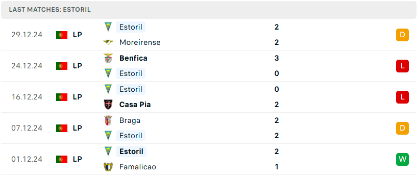 Bên kia, tình cảnh của Estoril cũng chẳng khá khẩm hơn là bao so với Estrela. Thậm chí, họ còn đang đứng thấp hơn đối thủ trên BXH khi chỉ có được 15 điểm sau 16 vòng đấu, hơn nhóm cầm đèn đỏ đúng 2 điểm. Vấn đề lớn nhất của Estoril nằm ở khả năng phòng ngự yếu kém, khi họ đang là đội để thủng lưới nhiều thứ hai tại giải đấu. Hàng thủ thường xuyên mắc sai lầm đã khiến đội bóng này rơi vào tình thế khó khăn. Với tình hình bất ổn hiện tại, mỗi trận đấu còn lại đều mang tính chất sống còn đối với Estoril.