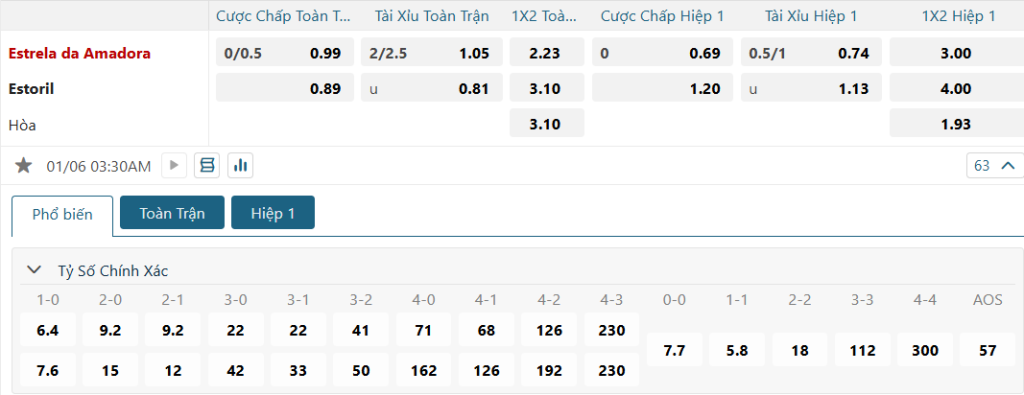 Soi kèo Châu Á, kèo chấp CD Estrela vs Estoril