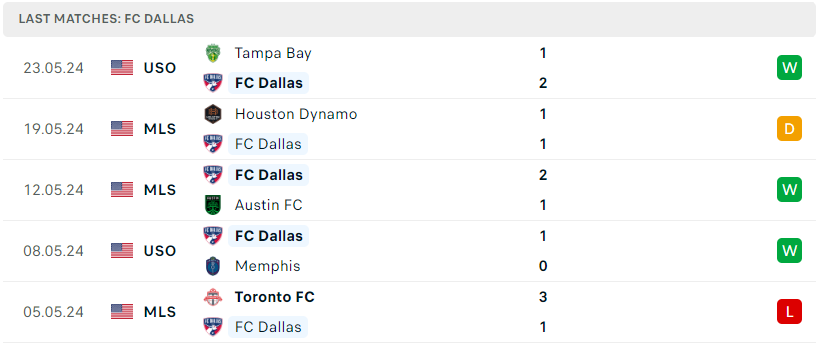 Với thắng lợi 2-1 trước Tampa Bay tại cup Mỹ mở rộng ít giờ trước, FC Dallas đã chính thức bước vào trận bán kết tại sân chơi này. Mặc dù vậy, nhưng màn trình diễn của họ tại MLS mùa giải năm nay vẫn chưa thật sự quá thuyết phục khi họ hiện chỉ mang về 12 điểm sau 12 vòng đấu và đang xếp ở vị trí áp chót trên BXH miền Tây. Màn tiếp đón Real Salt Lake đang thi đấu cực bay ở vòng đấu kế tiếp chắc chắn là một thử thách khó nhằn nữa dành cho binh đoàn Nico Estevez.