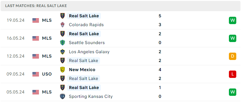 Phong độ đội bóng FC Dallas vs Real Salt Lake
