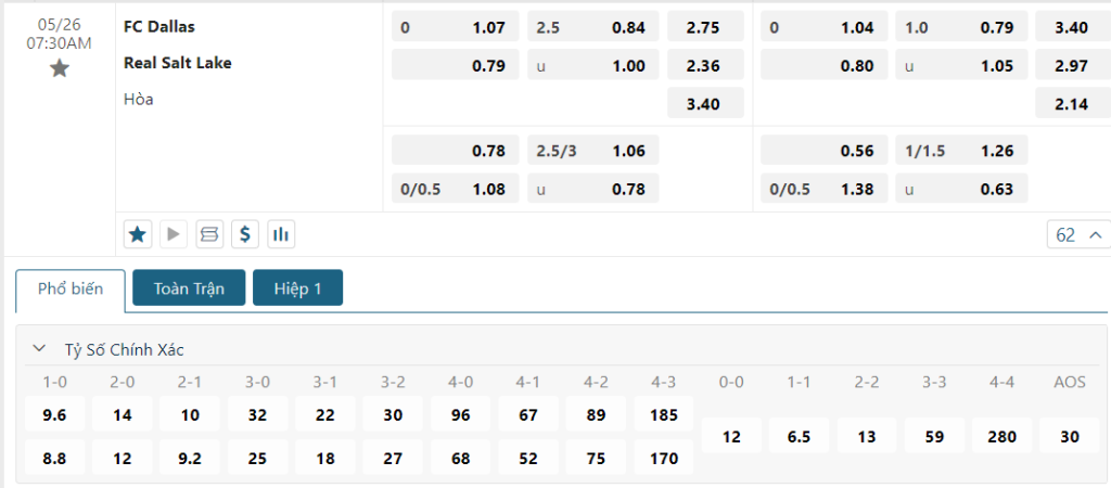 Soi kèo tỉ số FC Dallas vs Real Salt Lake