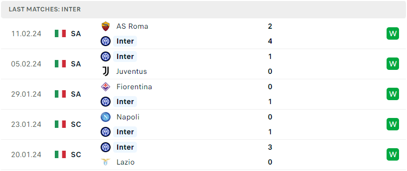 55 bàn thắng mang về chỉ sau 23 vòng đấu rõ ràng là một hiệu suất nhả đạn cực kỳ đáng gườm của Inter Milan ở mùa giải năm nay, bên cạnh sự chắc chắn ở mặt trận phòng ngự, hàng công của Nerazzurri cũng đang là điểm sáng trong lối chơi của họ. Chỉ phải tiếp đón đội bét bảng sẽ là cơ hội để Inter cải thiện hiệu số. Vì thế, khả năng tiếp tục nổ tài như trận lượt đi là rất cao.