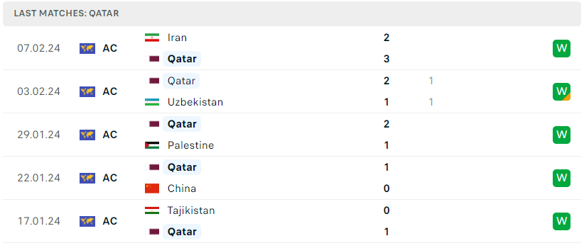 Phong độ của Qatar