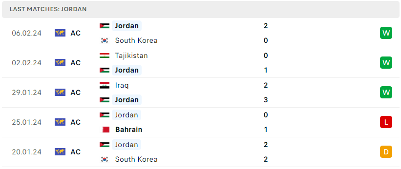 Phong độ đội bóng Jordan vs Qatar