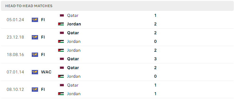 Thành tích đối đầu của Jordan vs Qatar