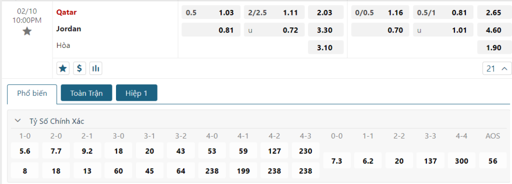 Kèo Châu Âu vẫn đang là sự nhỉnh hơn dành cho Qatar, khi mức ăn của nước chủ nhà là 2.03 trong khi con số này của Jordan là 3.30. Trong một thời điểm mà phong độ của Jordan không hề thua kém gì so với đối thủ thì “những chiến binh dũng cảm” hoàn toàn có thể tiếp tục áp dụng lối đá thực dụng và gây nhiều sự khó dễ cho đối thủ. Do đó, không loại trừ kịch bản bất phân thắng bại ở 2 hiệp đấu chính thức.