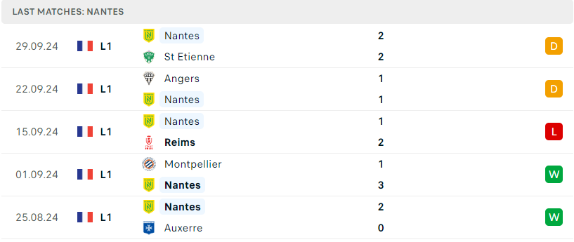 Bên phía kia, Nantes cũng đang cho thấy những tín hiệu khá khởi sắc, khi trong 5 vòng đấu gần nhất tại Ligue 1, đoàn quân của HLV Antoine Kombouaré đã mang về đến 6 điểm và chỉ phải nhận 1 thất bại. Những màn trình diễn gần đây cho thấy sự cải thiện rõ rệt trong lối chơi. “Chim Hoàng Yến” đã thể hiện một tinh thần chiến đấu mạnh mẽ, đặc biệt trong các trận đấu trên sân nhà, điều này hứa hẹn sẽ mang về thêm những kết quả tích cực trong thời gian tới.