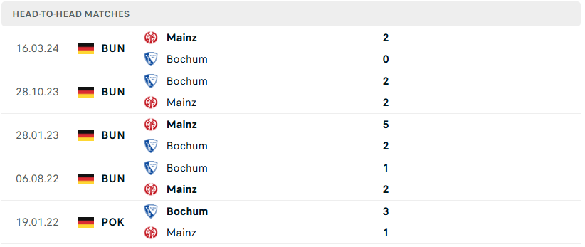 Thành tích đối đầu của Mainz vs Bochum