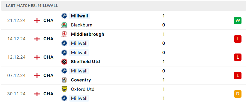 Phong độ của Millwall