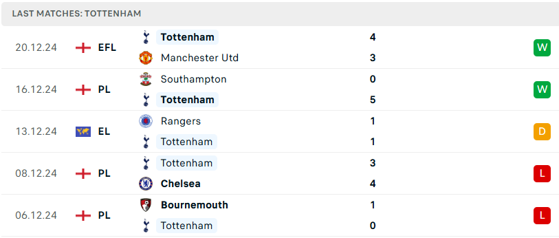 Phía đối diện, Tottenham cũng đang cho thấy dấu hiệu khởi sắc sau chuỗi ngày khó khăn. Chiến thắng 5-0 trước Southampton đã giúp họ giải tỏa rất nhiều áp lực, và giữa tuần qua, Spurs tiếp tục nối dài mạch thắng với chiến thắng trước Manchester United tại Carabao Cup. Dù mùa giải vẫn còn nhiều thử thách, mọi thứ vẫn đang rộng mở với Tottenham. Dưới sự kỳ vọng của người hâm mộ, đoàn quân của HLV Ange Postecoglou chắc chắn sẽ hướng đến mục tiêu 3 điểm trọn vẹn trong ngày lễ tặng quà.