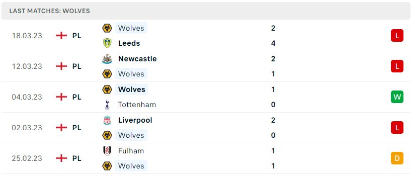 Phong độ của Wolves