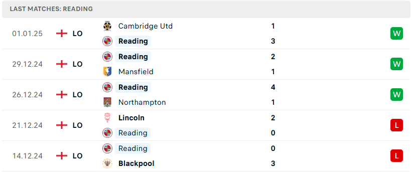 Phong độ của Reading