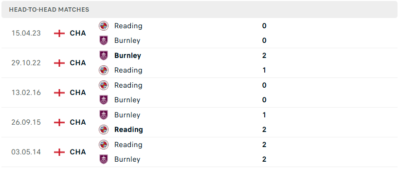 Lịch sử thi đấu giữa Burnley và Reading vẫn đang ở mức cân bằng, khi mỗi đội có được 1 chiến thắng và 3 trận hòa trong 5 lần gặp nhau gần nhất. Điều này cho thấy sự ngang tài ngang sức trong những lần chạm trán trước đây. Dẫu hiện đang thi đấu ở hạng đấu thấp hơn, Reading vẫn cho thấy những dấu hiệu tích cực và sự chuyển biến rõ rệt gần đây. Tinh thần thoải mái của đội bóng cửa dưới như Reading có thể là yếu tố quan trọng giúp họ tạo nên bất ngờ.