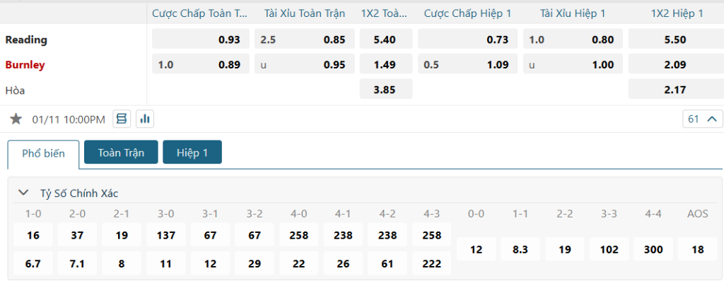 Soi kèo tỉ số Reading vs Burnley
