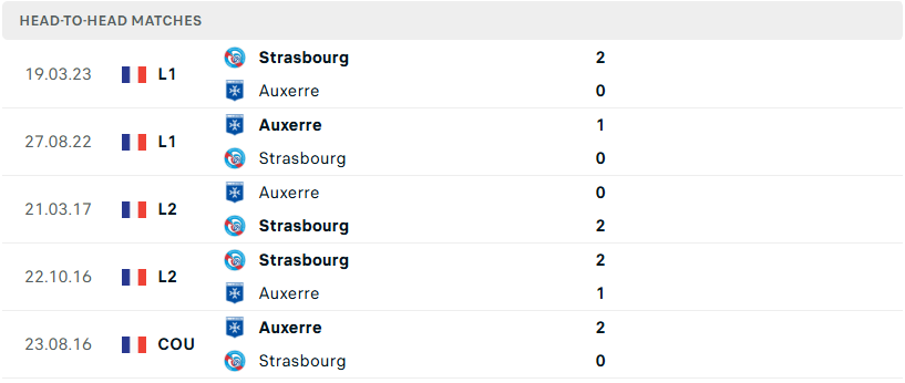 Thành tích đối đầu của Strasbourg vs Auxerre
