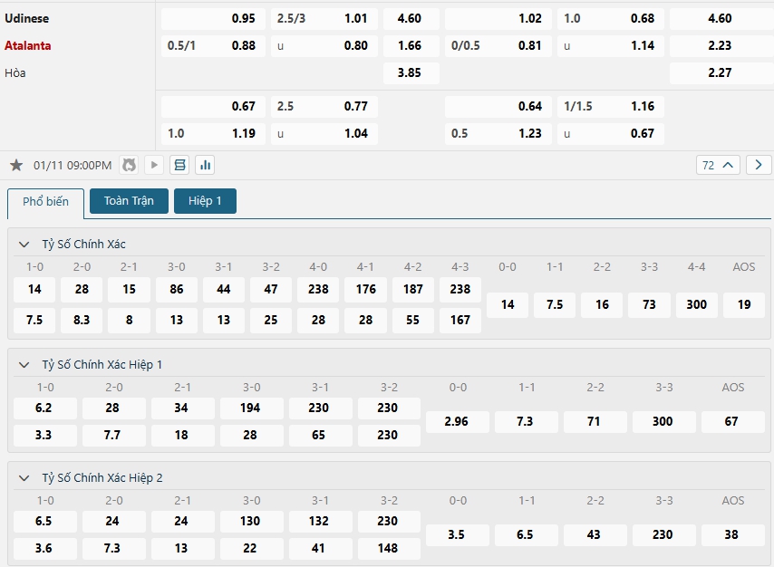 Soi kèo tài xỉu Udinese vs Atalanta