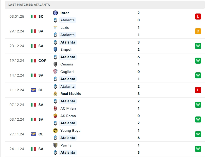 -Phong độ Atalanta